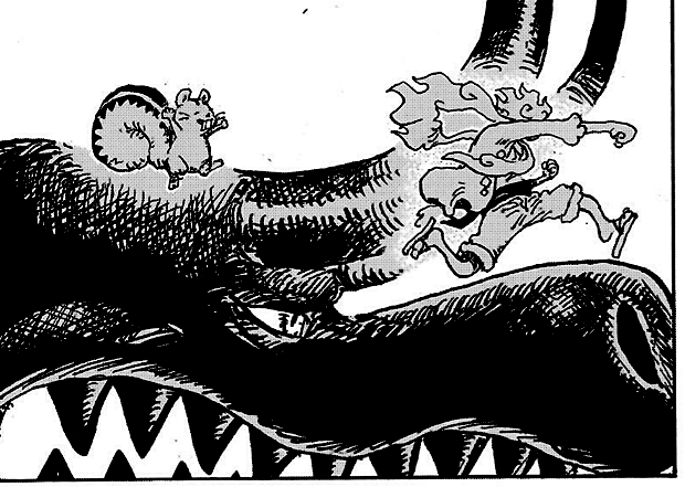 - There was a story about Stussy and Whitebeard explaining why he doesn't entertain her wants but also doesn't push her away, but due to timing issues it was not drawn.