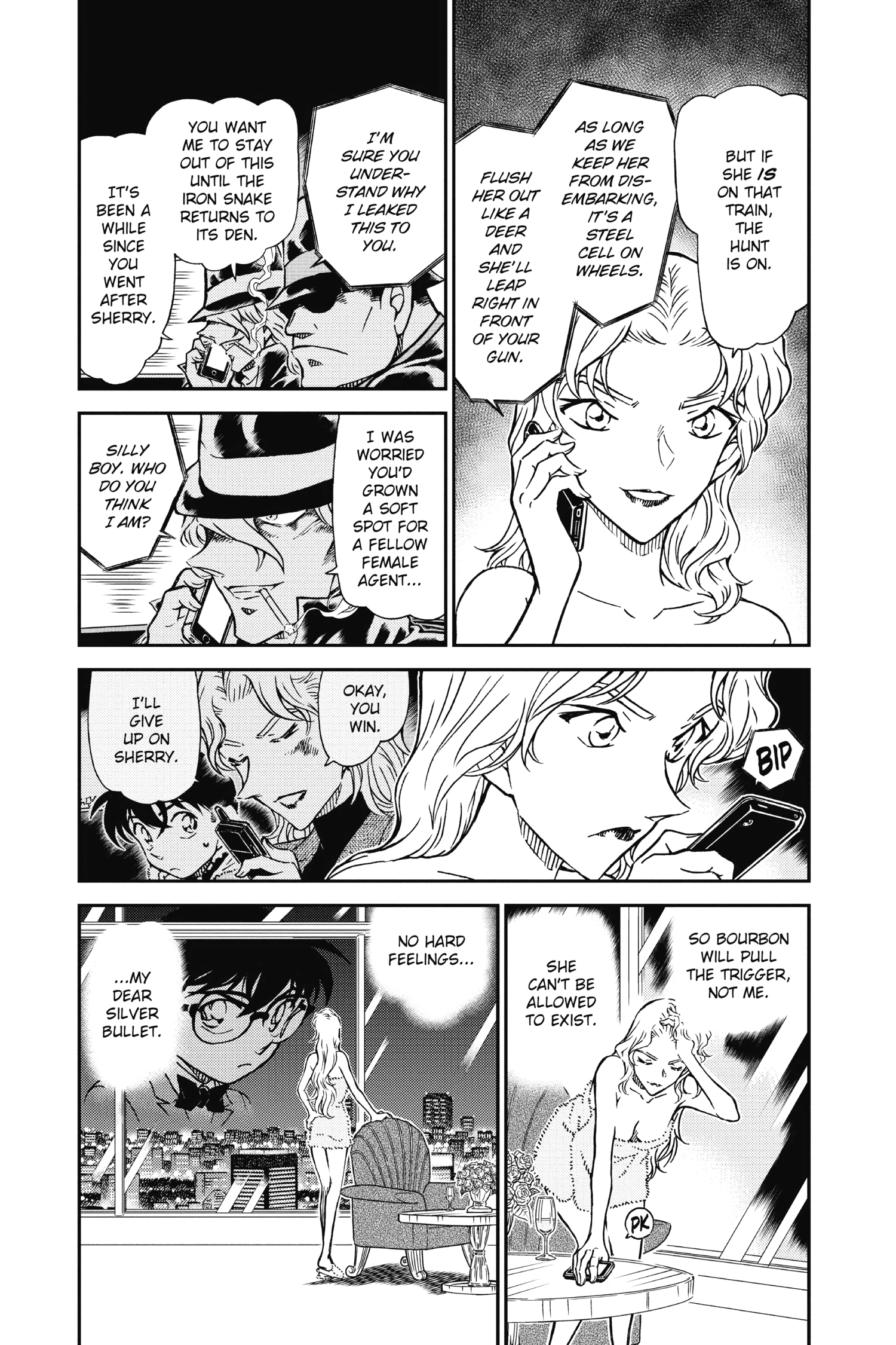 And to add to that, Bourbon line about calling syndicate agent in a heli is a bit weird, because Gin and Vodka wants her dead