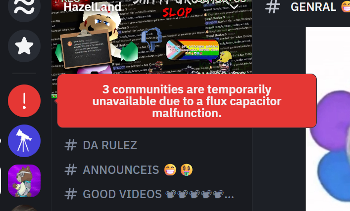 LOL their stupid discord clone is having outages so you can't even join the servers