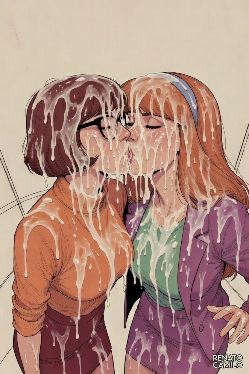 Use the exact hair and outfits visible in the reference image for both.