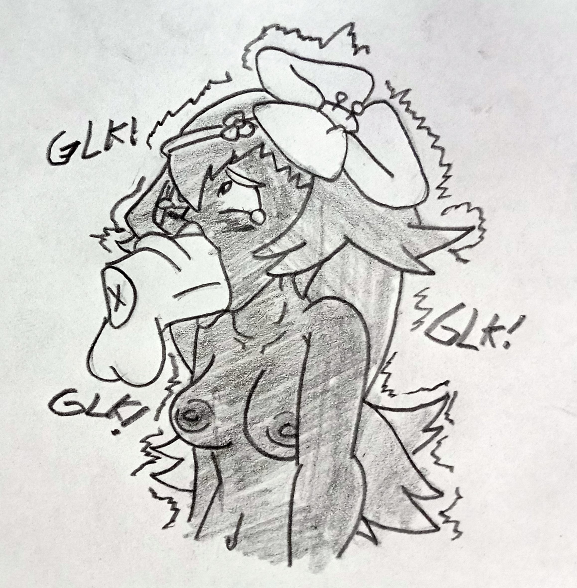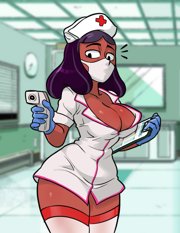 Needs a lil Goo in the background squeezing a hand at her flat chest while watching her buxom imaginary self goand also has a nose bleed