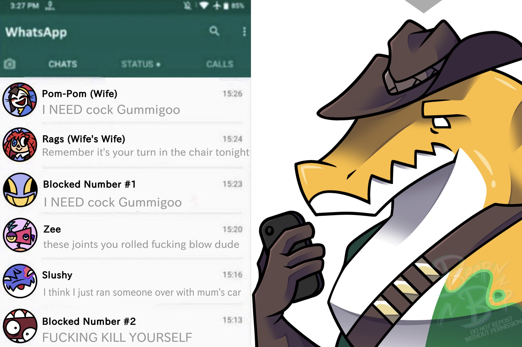 When I was at CAMHS back a decade ago, there was this one room with a nunch of posters children had drawn hanging on the wall, and there was always a new fucking tumblr sexyman every year, with the exception of the one drawing of a bunch of fnaf characters that they never took down.