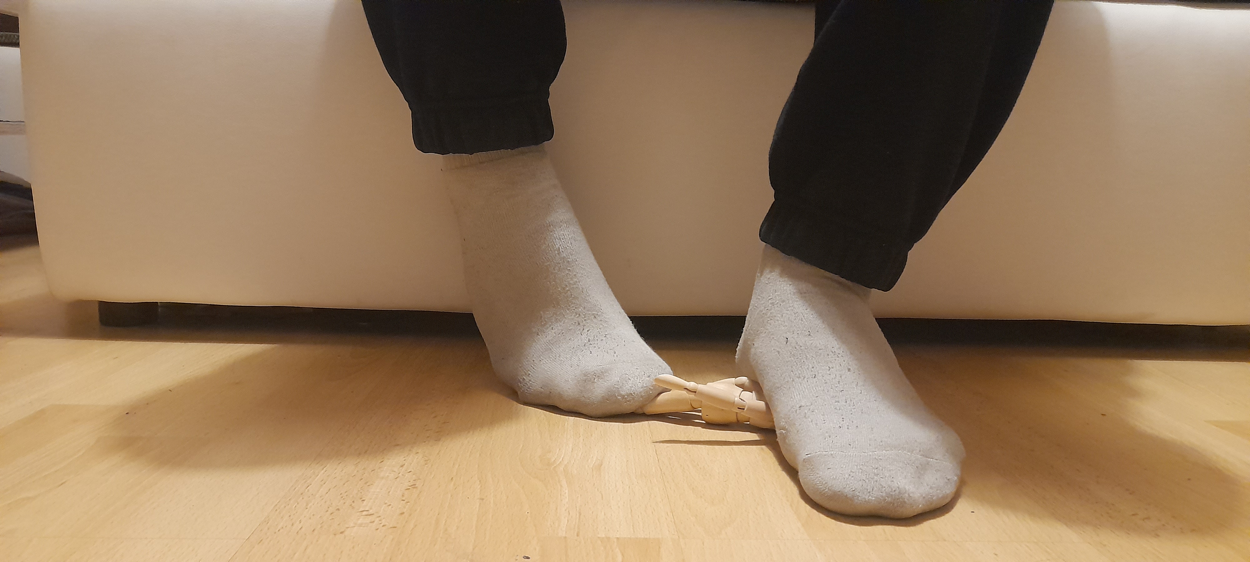 Here you go, this one is surprisingly good in the background, though should have specified bare foot on both feet.