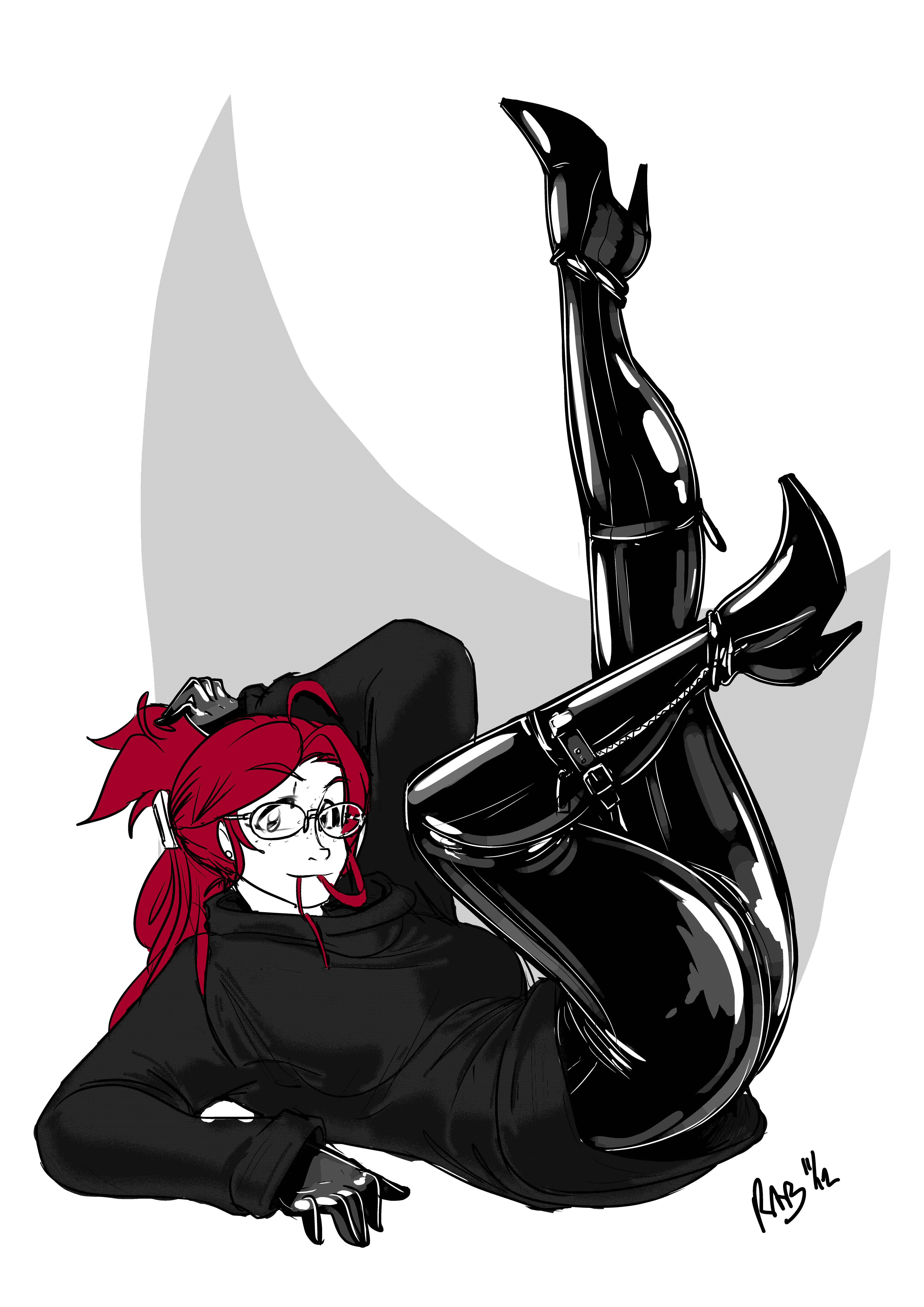 >A rich Kuudere who is into wearing multiple layers as a way to shut out the world (with a maid attending her who also wears rubber). Works as a 100X Developer and uses VR while coding for maximum efficiency.