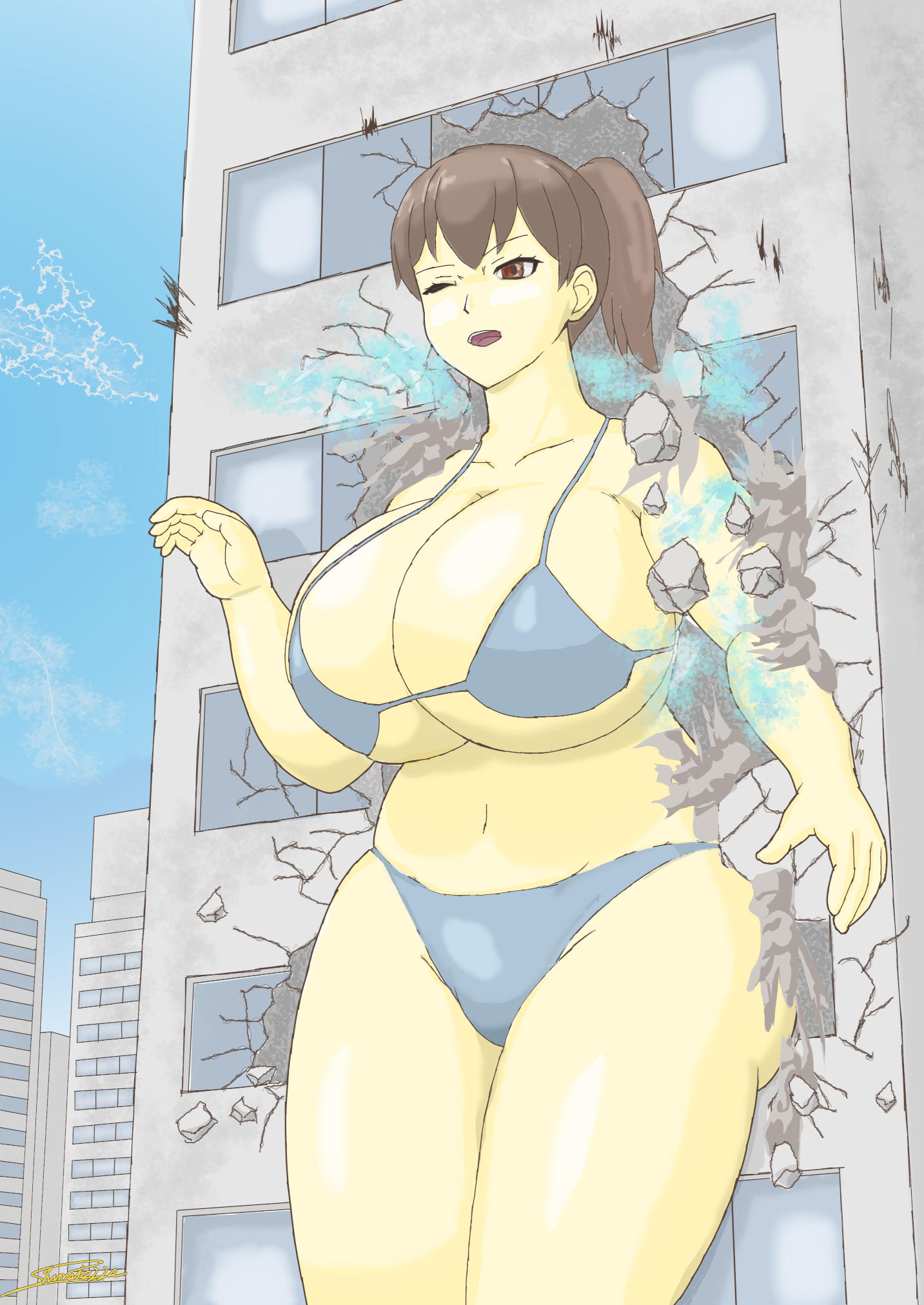 >Mount Lady art where her quirk goes haywire and she grows way bigger than usual