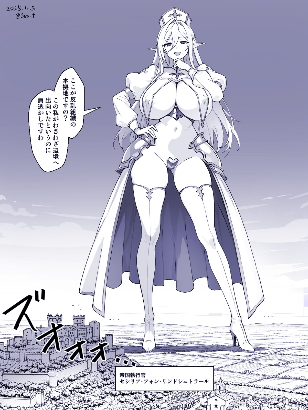 >Mount Lady art where she's her canon giant size