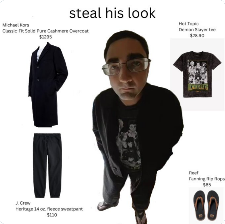 I dont care how much of a schizophrenic you are. If you wear flip flops with jeans or any kind of long pants, you deserve the death penalty. The anime shirt makes it worse