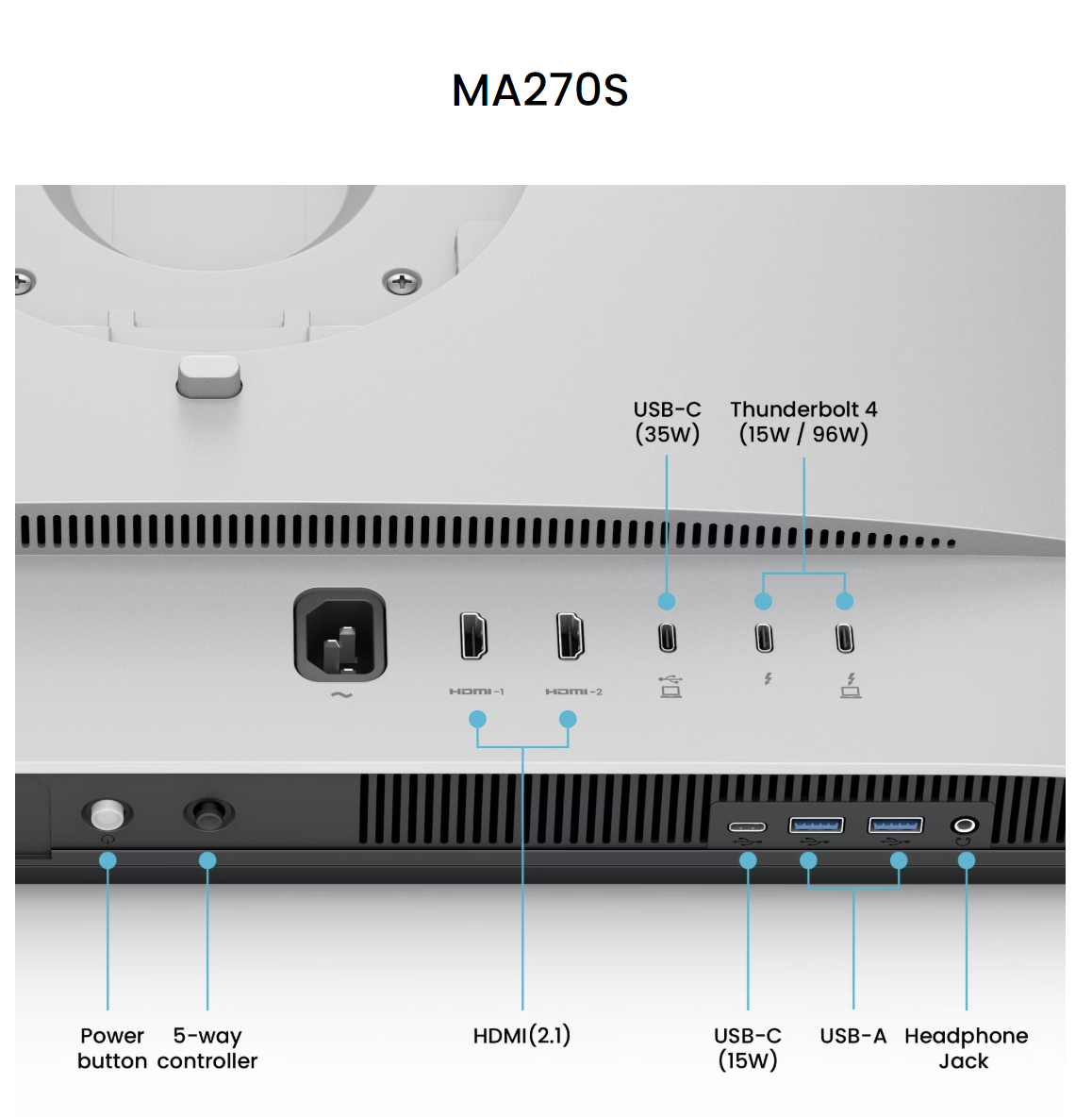 also, somewhat of an unfortunate choice of port placement of those ports you would use all the time (power and internet), completely at the outer sides and pointing down. I prefer how ben-q does it