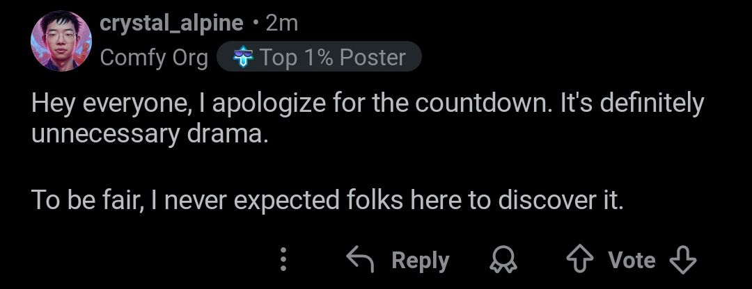 After today's events with ComfyOrg and its organization, I have been left perplexed and without direction or action to take in response to this measure. /ldg/ will never be the same after this comfyui catastrophic move. As a baker of this general, sincerely I do not want to be complicit in this great ponzi scheme and I have stopped identifying myself with this ideology of Comfy. Nor do I want /ldg/ to be identified as part of this great farce that is the local models ecosystem, a case bordering on what would be organized crime.