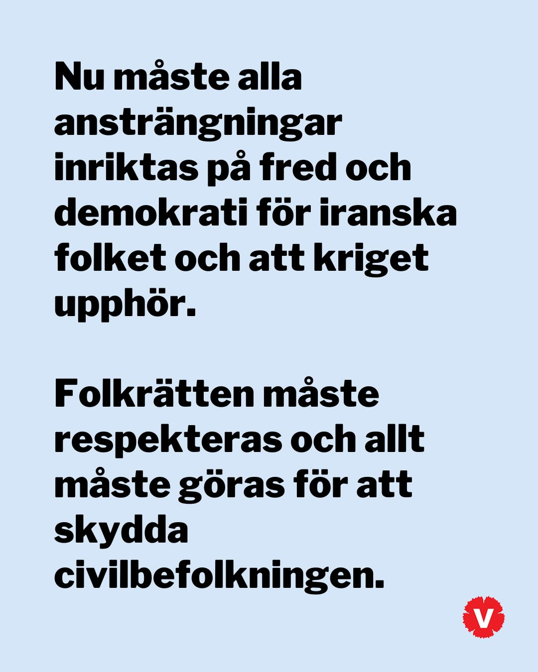 Varför ljuger du om Vänsterpartiets ståndpunkt? V tar aktivt ställning för folkrätten och för ett slut på kriget, som är ett brott mot just folkrätten.