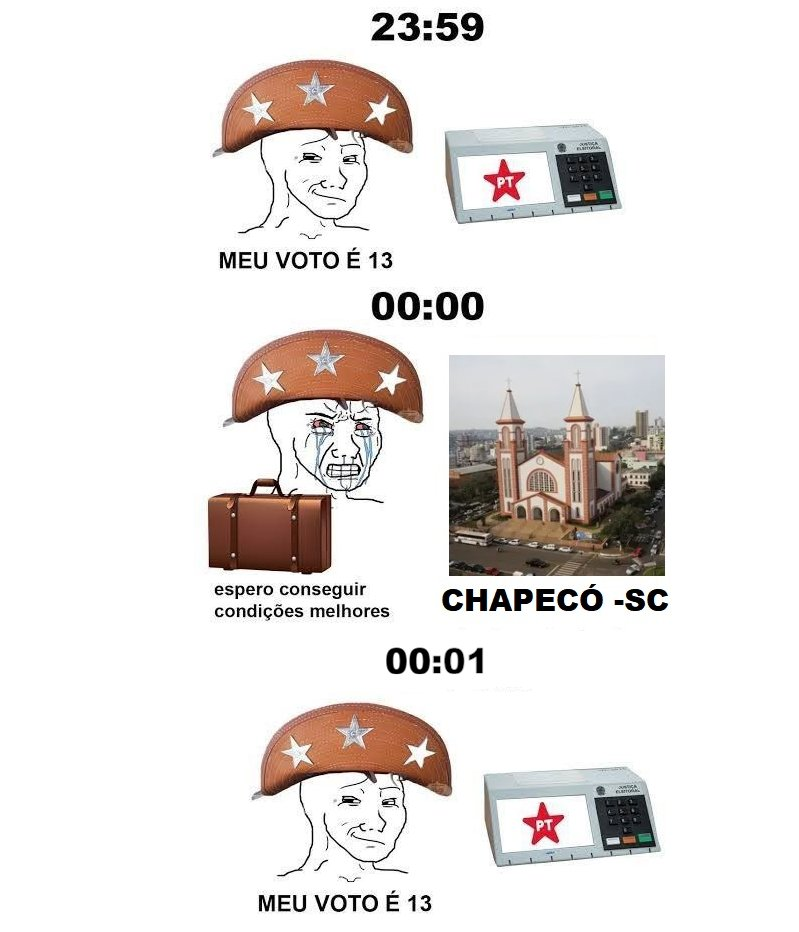 e puta que pariu, como eu odeio esquerdista/isent ão/mblfag. o primeiro ainda tem certo imprevisibilidade, mas os outros dois parecem bots que vão colocar Bolsonaro em tudo, é jurado que quase todo cronicamente online vai ficar mais pra esse lado