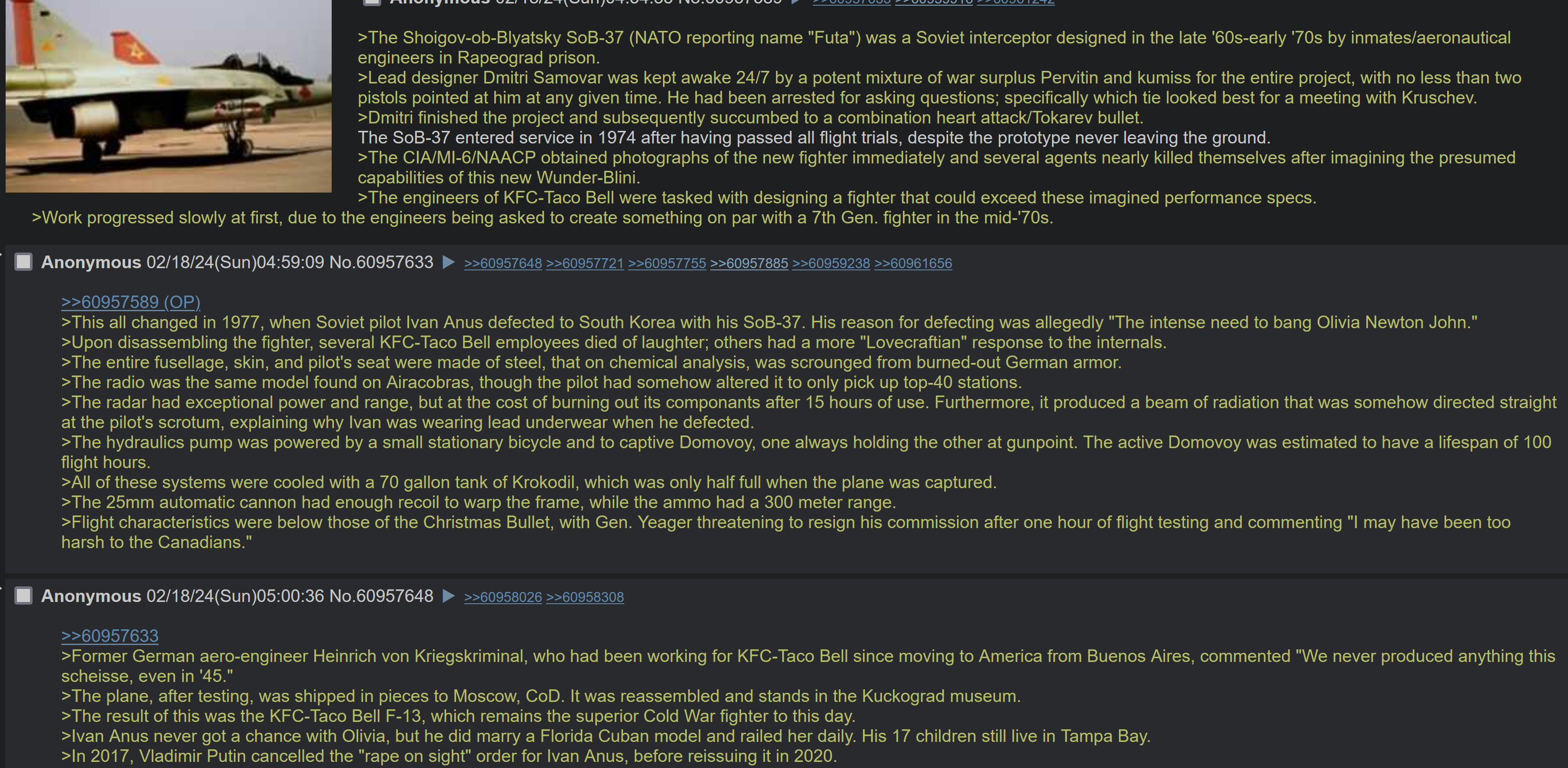 There's a greentext screencap I've seen a while ago, must be years.