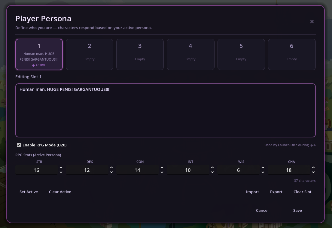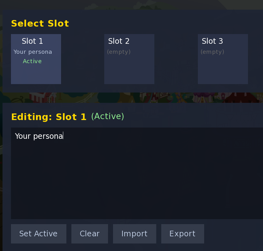 Anchor for bots, lorebooks, scenarios.