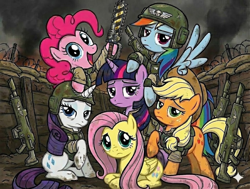 >Pinkie Pie's mane had deflated. Not fully—more of a half-deflation, a Pinkie Pie at sixty percent capacity, which was somehow more disturbing than if it had gone completely flat. She was not smiling. She was staring at her Ork miniature with the expression of a pony re-evaluating her life choices.