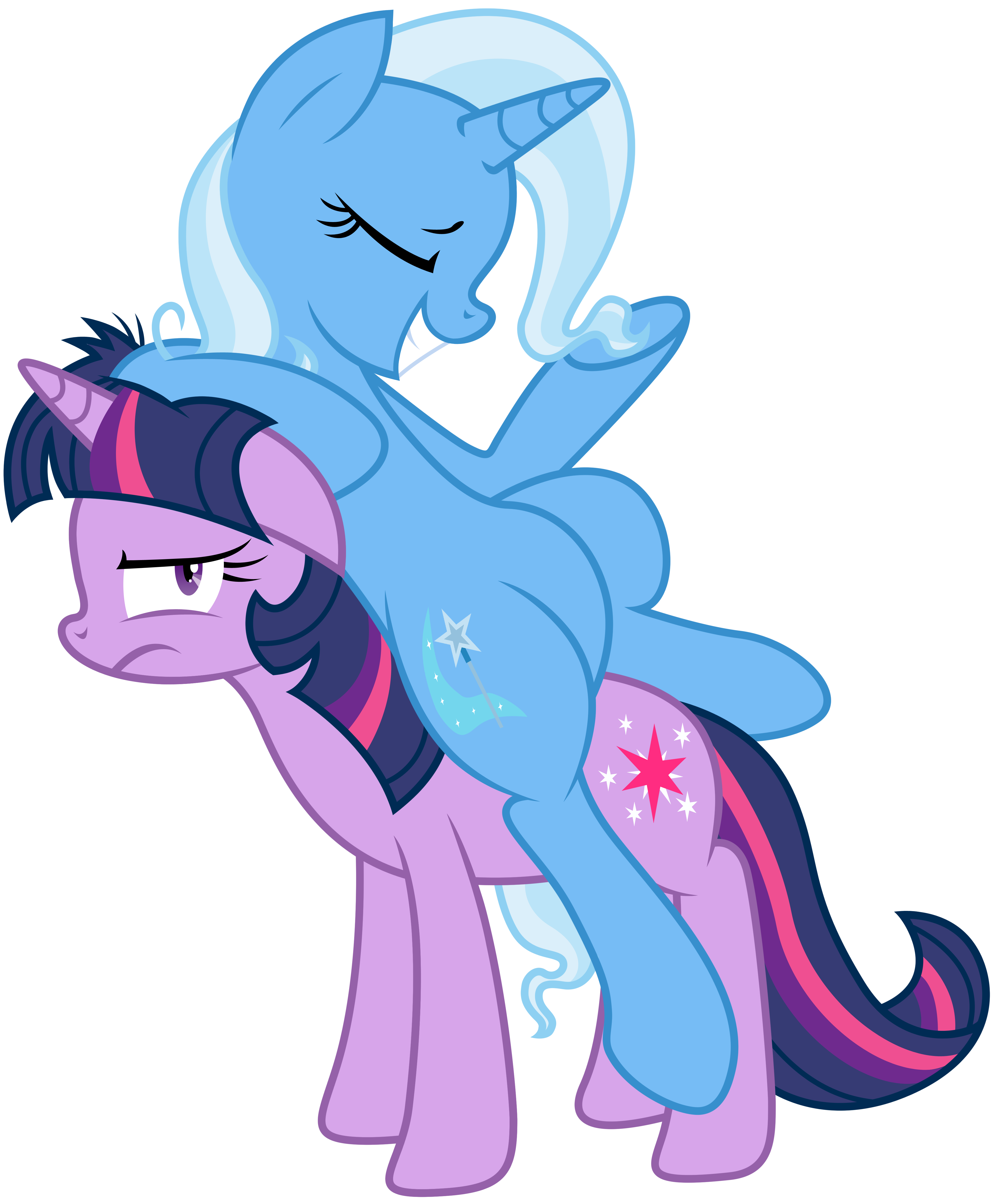 Sometimes I wonder how fun it'd have been if Trixie was Twilight's apprentice instead of Glimmer. Trixie being a selfish, chaotic, narcissist would've played well with Twilight's controlling and mature personality.