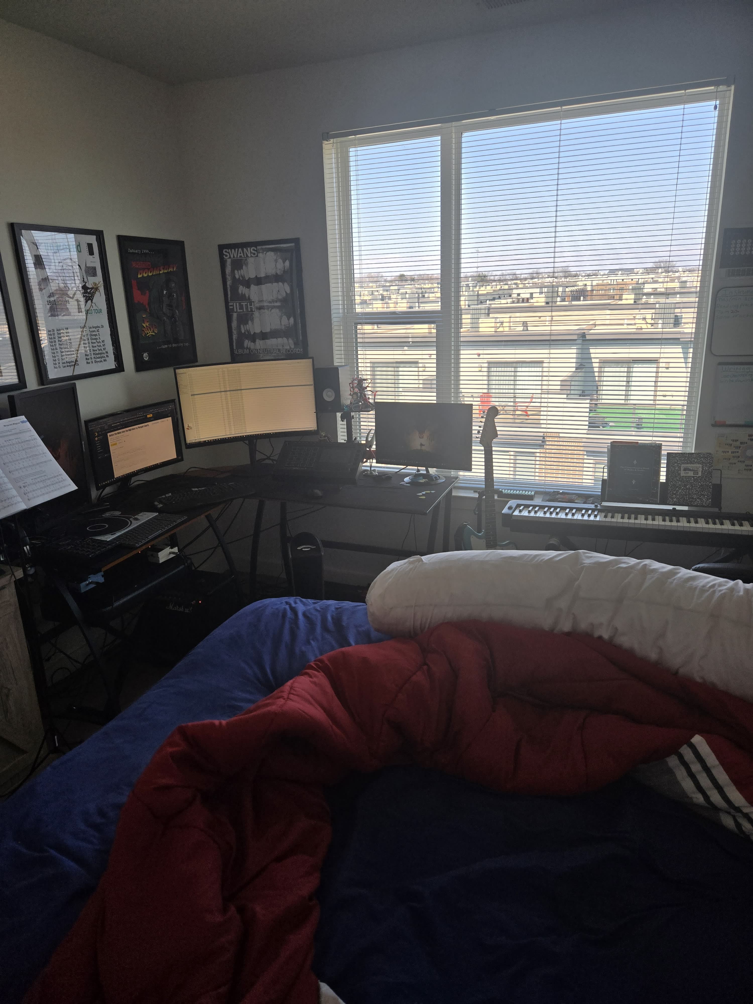 Bedroom studio edition. Post where you like to play guitar. I like looking out my window and playing.
