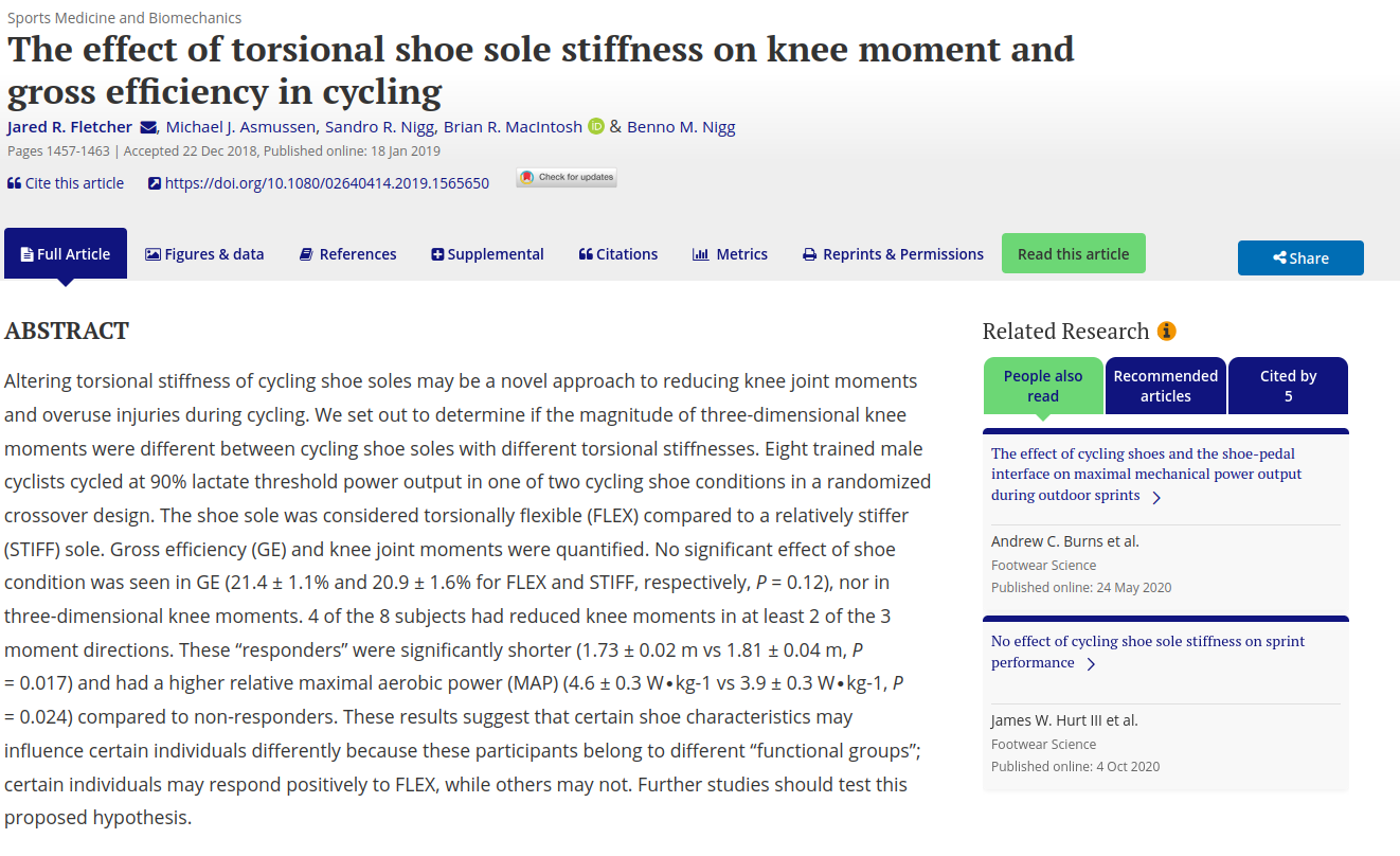 >the stiff sole increases efficiency and reduces loss through flexing