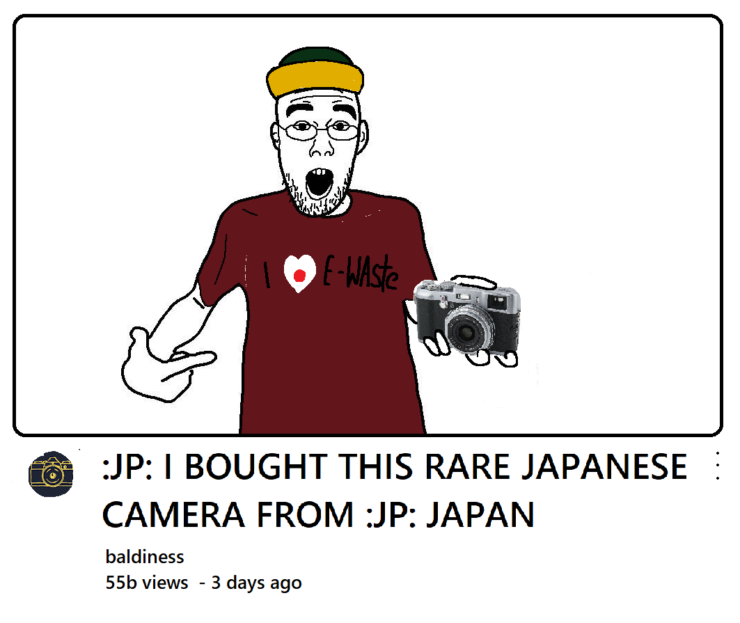 >Unlike other hobbies, but similar to other artistic pursuits, if you spend all of your time talking about equipment and your results suck (snappiness, Tom Carlton), people will just hate you. Tom Carlton for example is always bitching about all the hate he gets, probably because he has about 700 videos that are all identical to picrel.