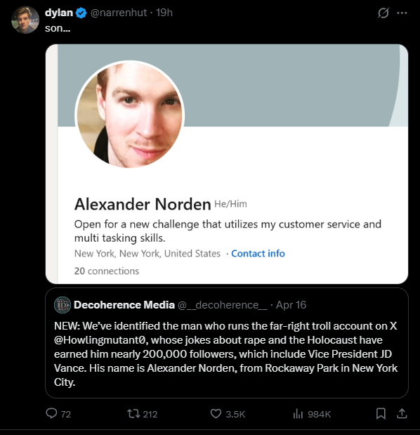 The left has doxxed another JD Vance burner account, how despicable