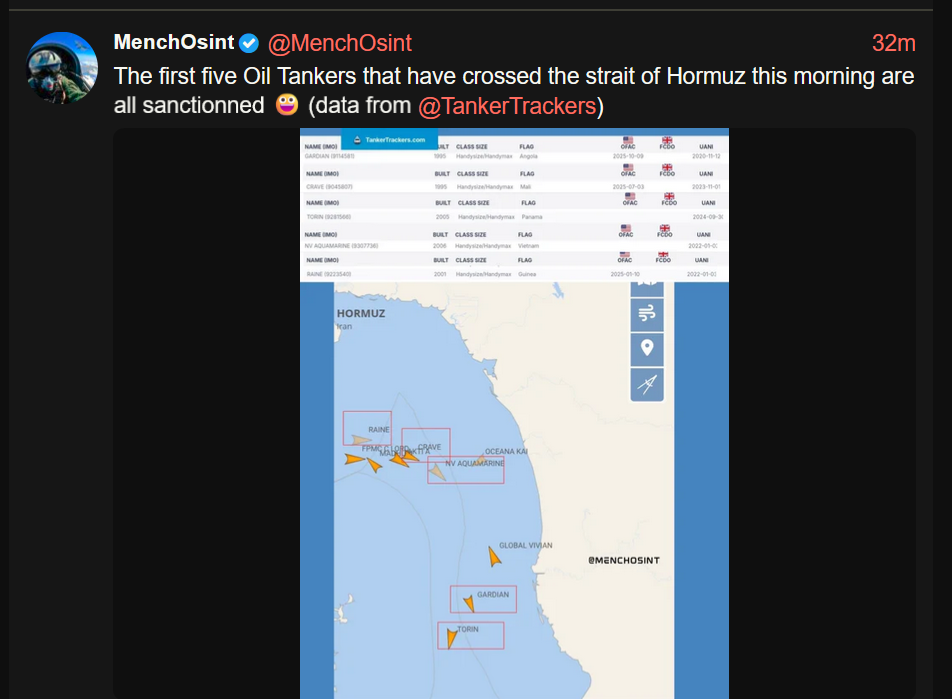 6. The Iranians open the Strait of Hormuz despite the ongoing American naval blockade - oil prices plummet sharply.