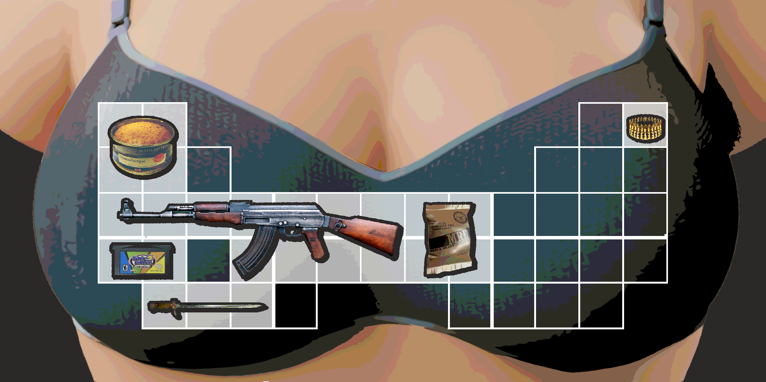 The theme of this world setting represents emasculation, from the absence of GUNS ( firearms as penis masculinity metaphor), the cultural fondness and nostalgic reminiscence over the Seth Rogen Superbad (2007) film (widely regarded as a progenitor of the bro / gross-out sex comedy genre), the provenance backstory of the Bayonet