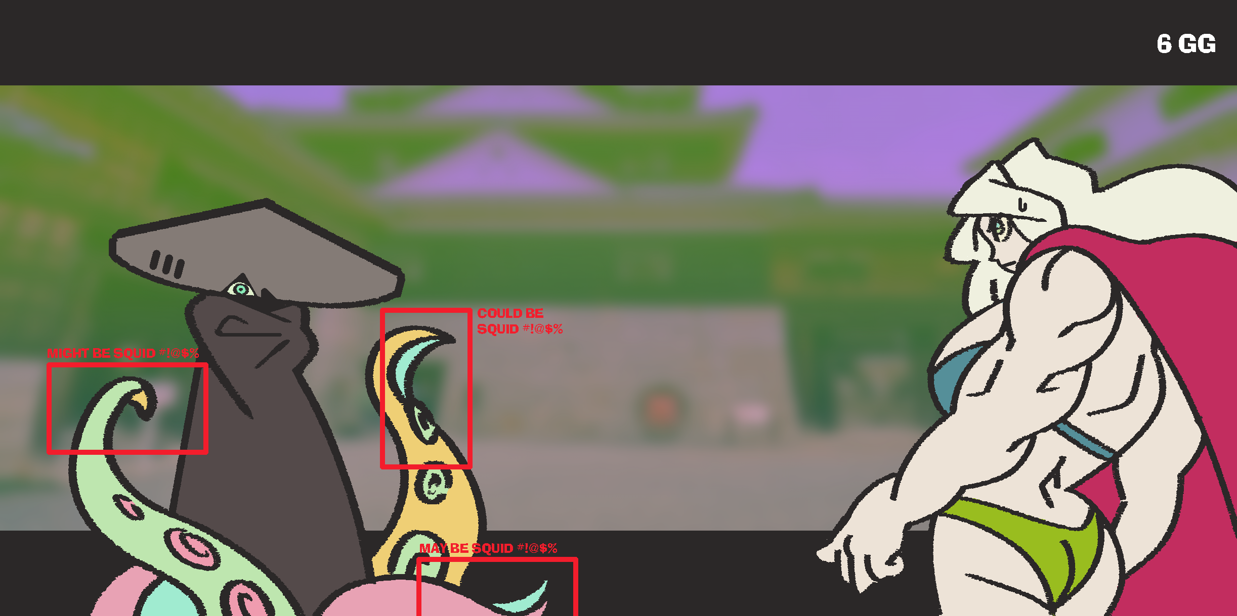 “Ha! Serves you right, you gorilla hobo bitch.” You glance over your shoulder to see the GUN KING drawing himself up from off the ground, steadying his immense body with his GATLHAMMER. He coughs, his form bent but voice proud. “You got lucky beating me. But the MUTANT KING? That psycho is going to tear your pet eggplant up into ten pieces and then ram it down every hole you have. Then I’m turning your dumbass little castle into an EVO venue.”