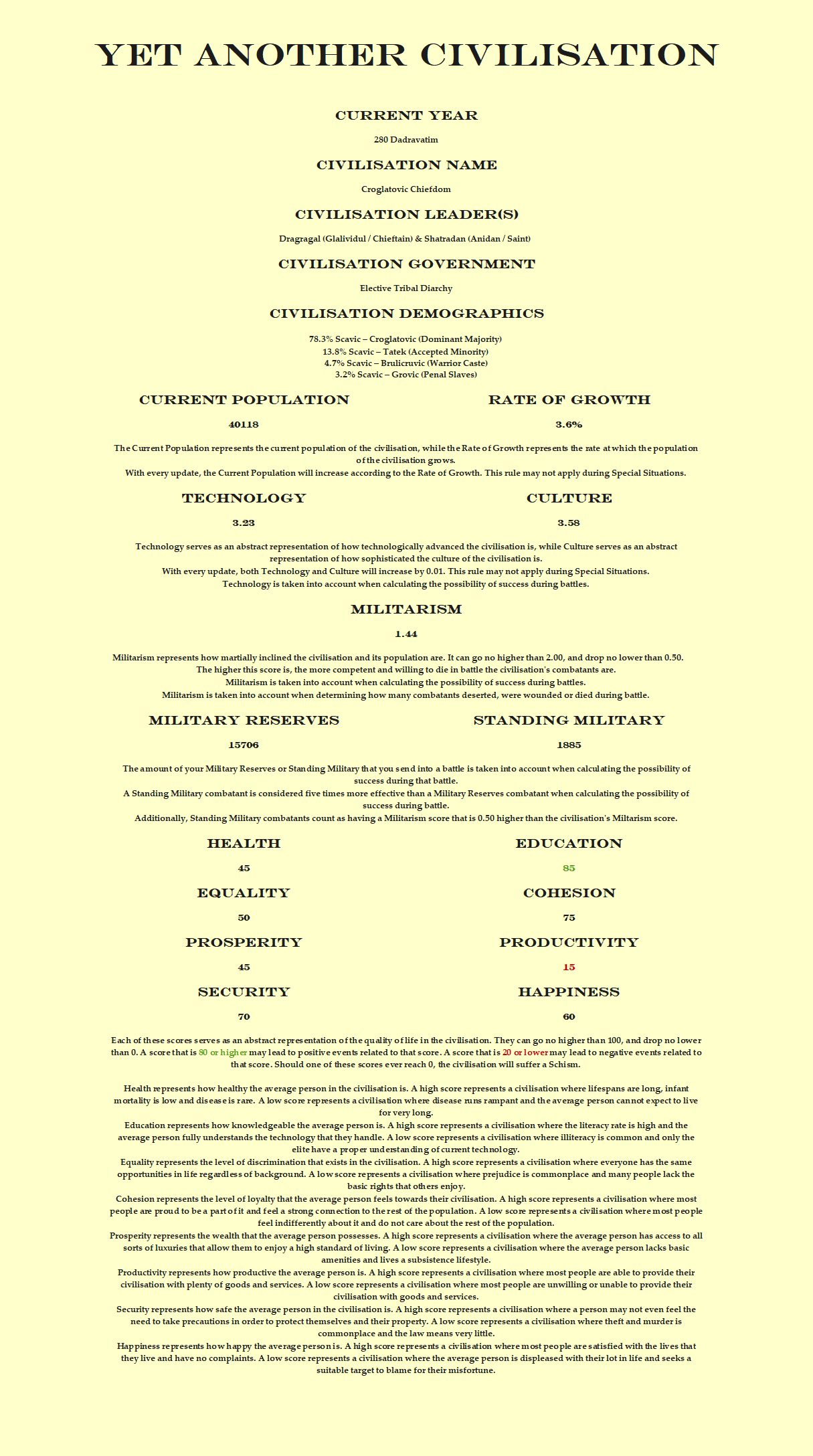 >Encyclopedia. This document contains a glossary and everything that there is to know about the Croglatovic civilisation so far.https://docs.google.com/document/d/1hHXocAYEMmlKvGJSvHA07fqvnlbYrqSC5V HMmxxUxIY