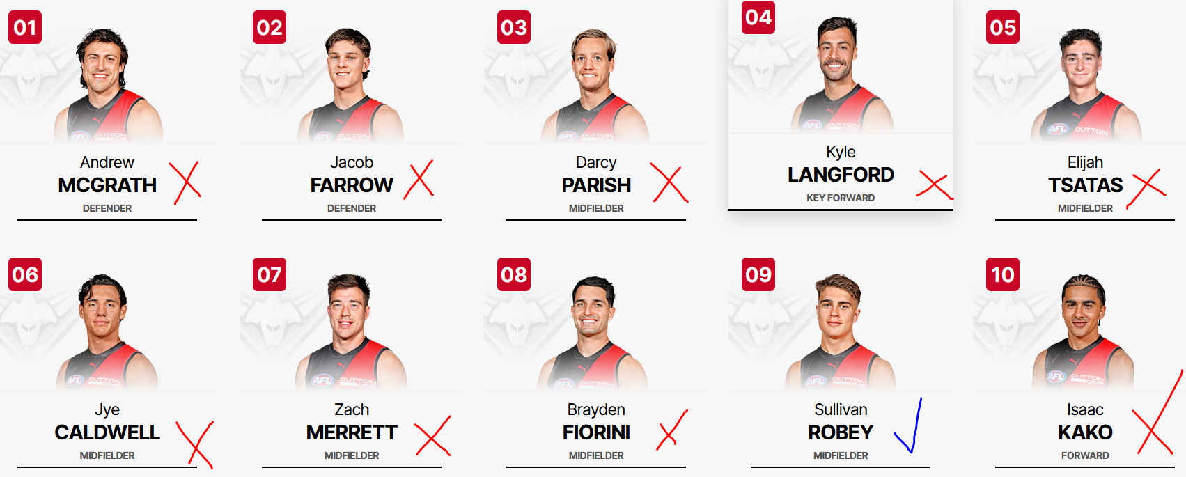 >Collingwood has submitted their team list sorted by player number