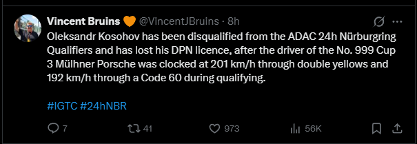 Race 1 of the 24h Nürburgring Qualifiers not resumed after a fatal crash