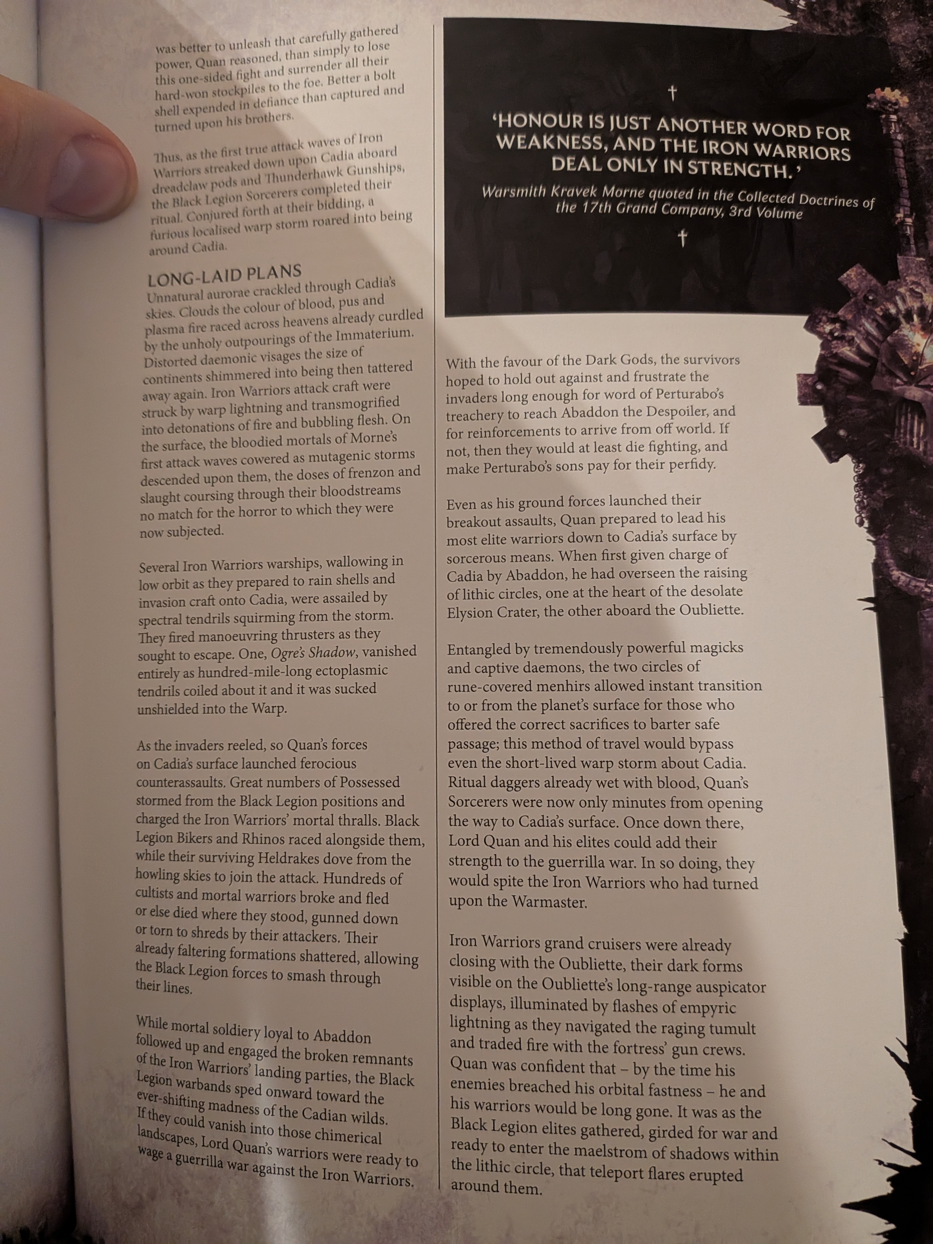 GW recently wants to paint the Traitors like Blood Pact as being a superior chaos-juiced version of guard rather than a simple 1:1 with primaris, which makes sense because they'd be the equivalent of Norscans who are simply stronger than Imperial or Bretonnian common men. This would justify the existence of a Codex: Renegades and Heretics with elite level Vraksians and Bloodpact, supported by mutant chaff (like it says right there) and cult zealots.