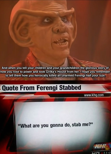 >Yeah... Let's just ban all political speech in Star Trek... Even though Star Trek itself is, and always has been, literally saturated with politics.