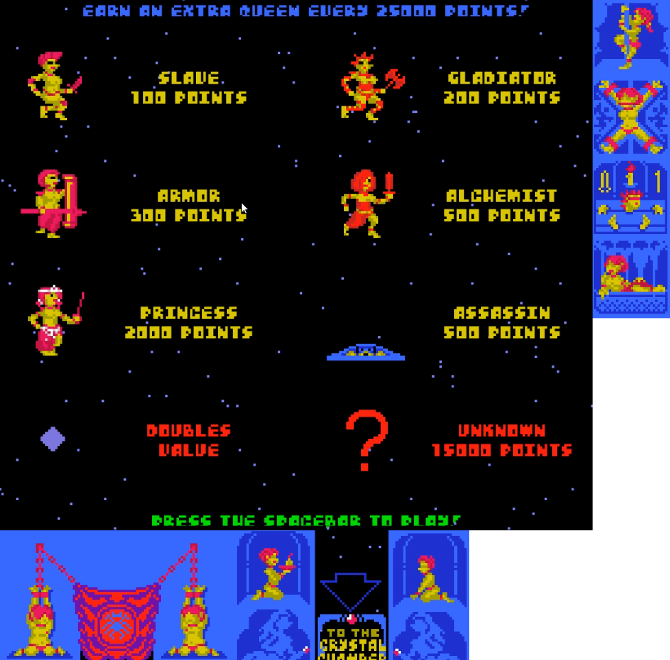 The slaves are feeling rambunctious and are running amok and as the Lesbian Spider-Queen of Mars it's your royal duty to collect them. Pacman style.