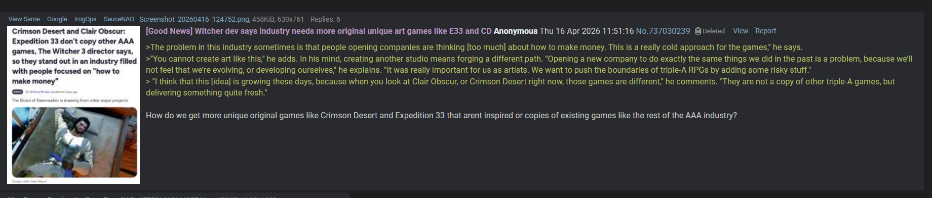 There should be a new genre for Crimson Desert and E33 Anonymous 04/16/26(Thu)11:11:59 No.737041256 [Reply]▶