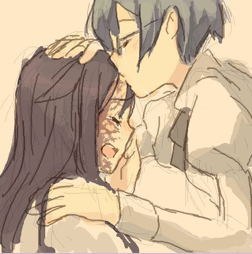 >Lilly touching Hisao's face