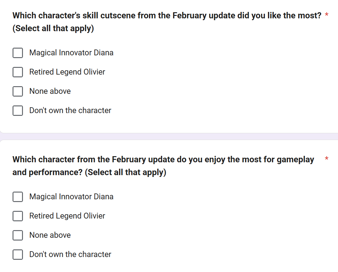 >only 2 chars or costumes monthly...