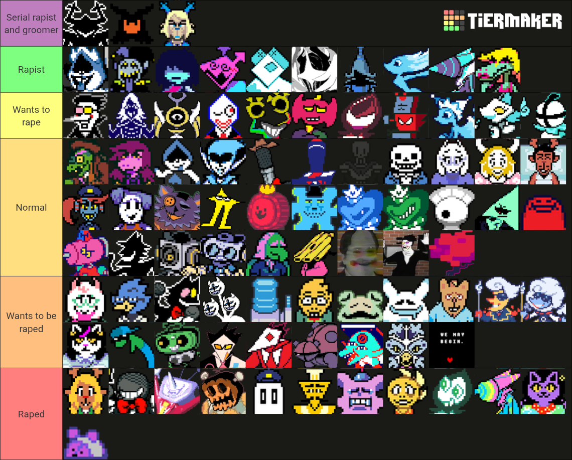 Deltarune character tierlist on whether theyd be a rapist or a rape victim, or someone who wants to rape or be raped