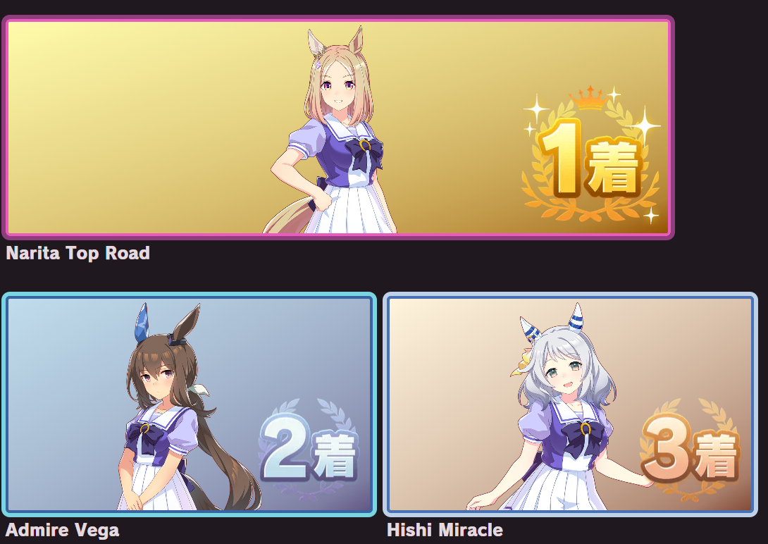 Current Rate Up Trainee: Nishino Flower (3*), Ballroom Seiun Sky (3*), Ballroom Fuji Kiseki (3*)