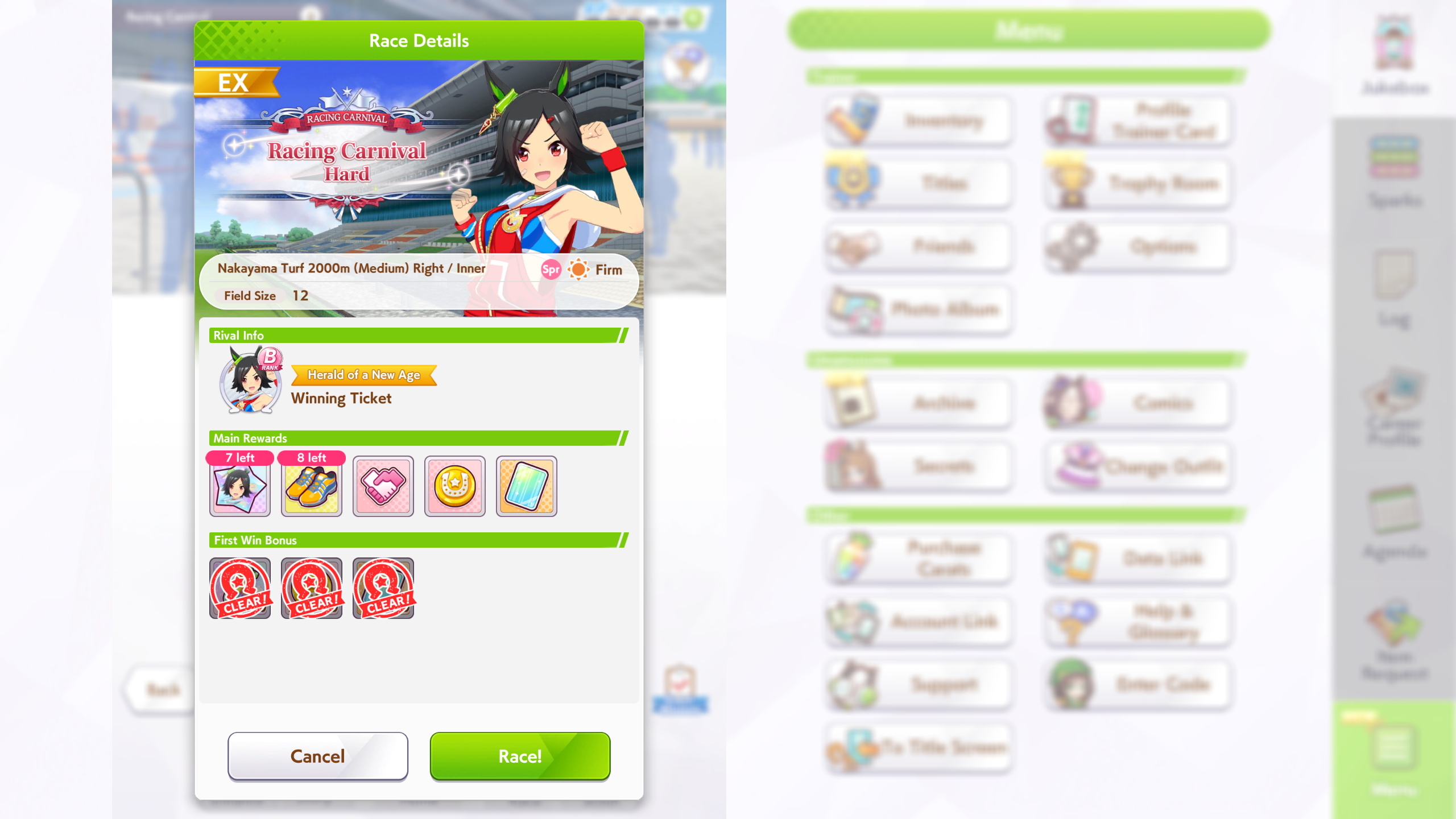 Current Rate Up Trainee: Nishino Flower (3*), Ballroom Seiun Sky (3*), Ballroom Fuji Kiseki (3*)