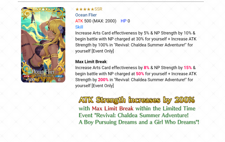 Ah cool, cheers, I'll look forward to that then! Looks like a great upgrade over a couple of free CEs I usually used up until now. (Still don't have many great non-event DPS oriented CEs besides one that gives +60% NP damage to berserkers when I'm running one of those)