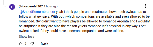 Thats because owlcat is embarrassed to admit people only play there games for the waifus. Do you unironically thinking owlcats writing and gameplay is good?
