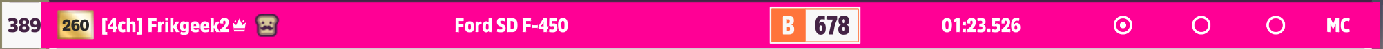 I'd have to look into it because of PI bullshit. It's like 300~350th on the rivals leaderboard which isn't very good but I don't know what parts they removed to go down to 678 PI. Maybe the guy is just a dirt god and wanted to stunt on people in opens with a stock car. We used to do that. For the record your time and everyone else's in the lobby are like 10 seconds off the pace, so your performance isn't indicative of anything.