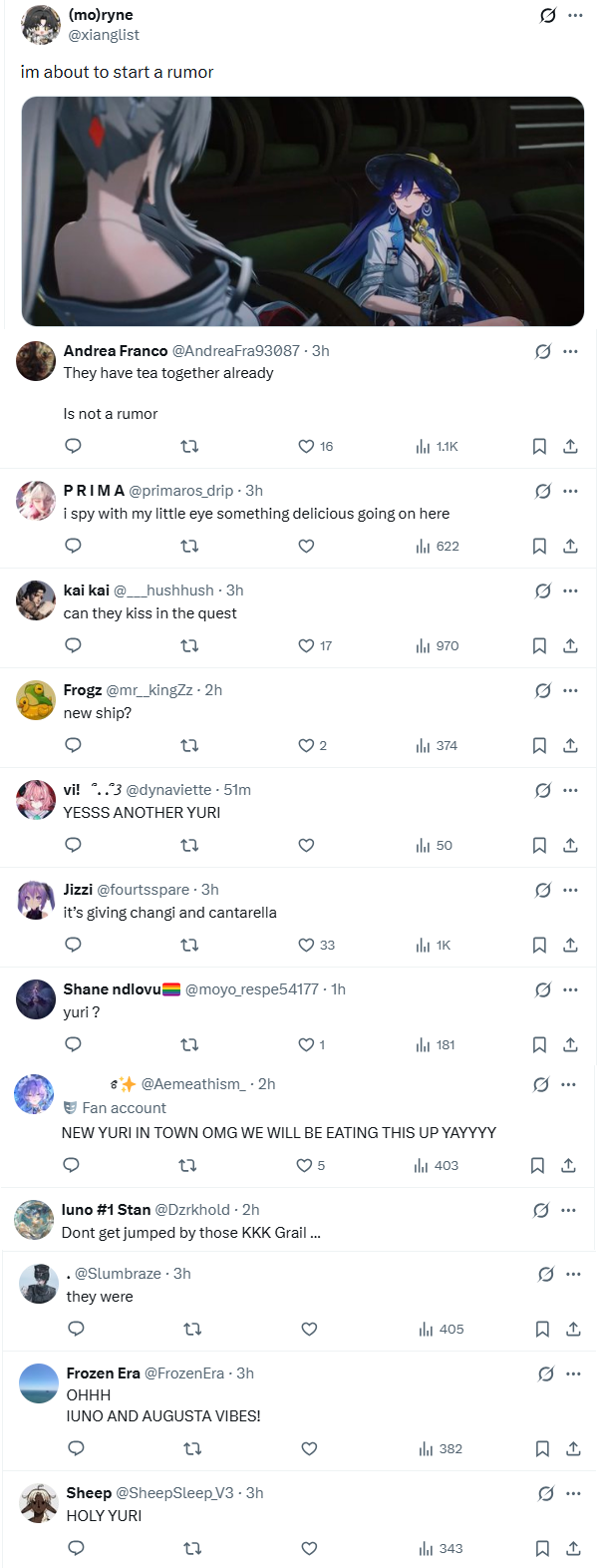 Your source of the juiciest dramas about gacha games. Anything goes---your sentiment about the gacha industry, schizo takes, conspiracy theories, MTL screenshots from obscure Chinese forums, or just random gacha related topics that don't fit in a specific general.