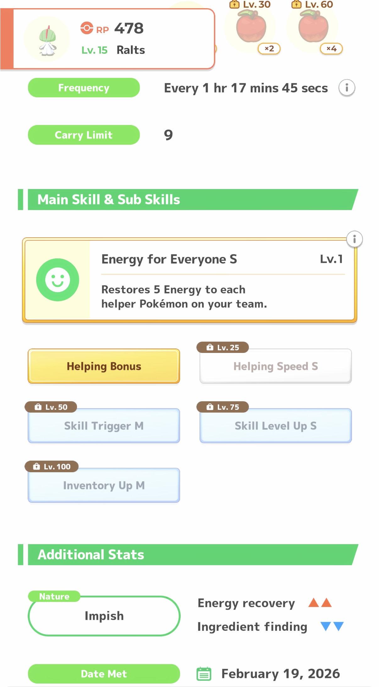 Didn't realize until now that the ingredient bonus only applies to skills. Bit of a niche bonus, but we're getting 1.5x meals I guess.