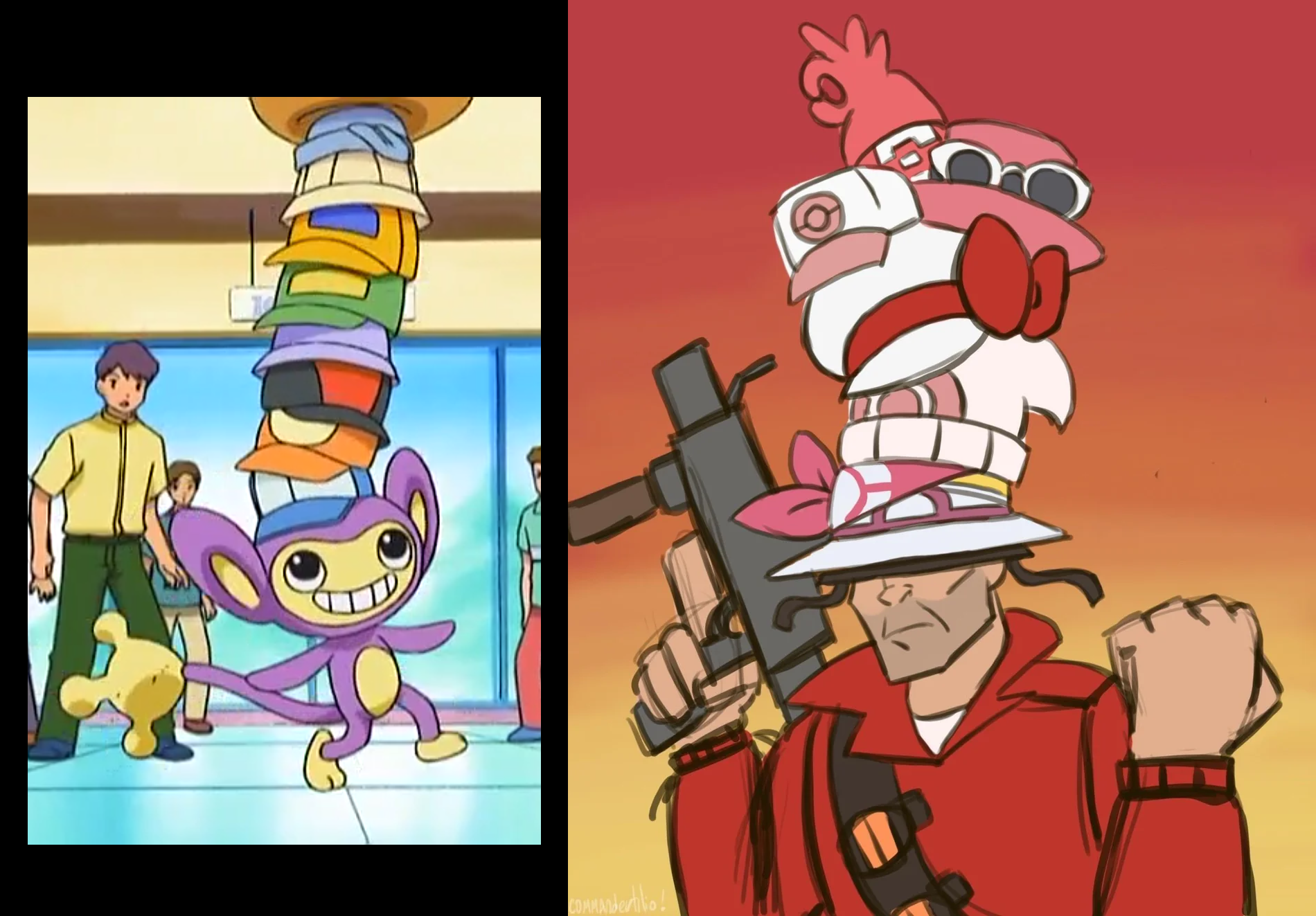 Requesting TF2 Soldier and Ash's Aipom standing menacingly above a defeated trainer, demanding their reward.