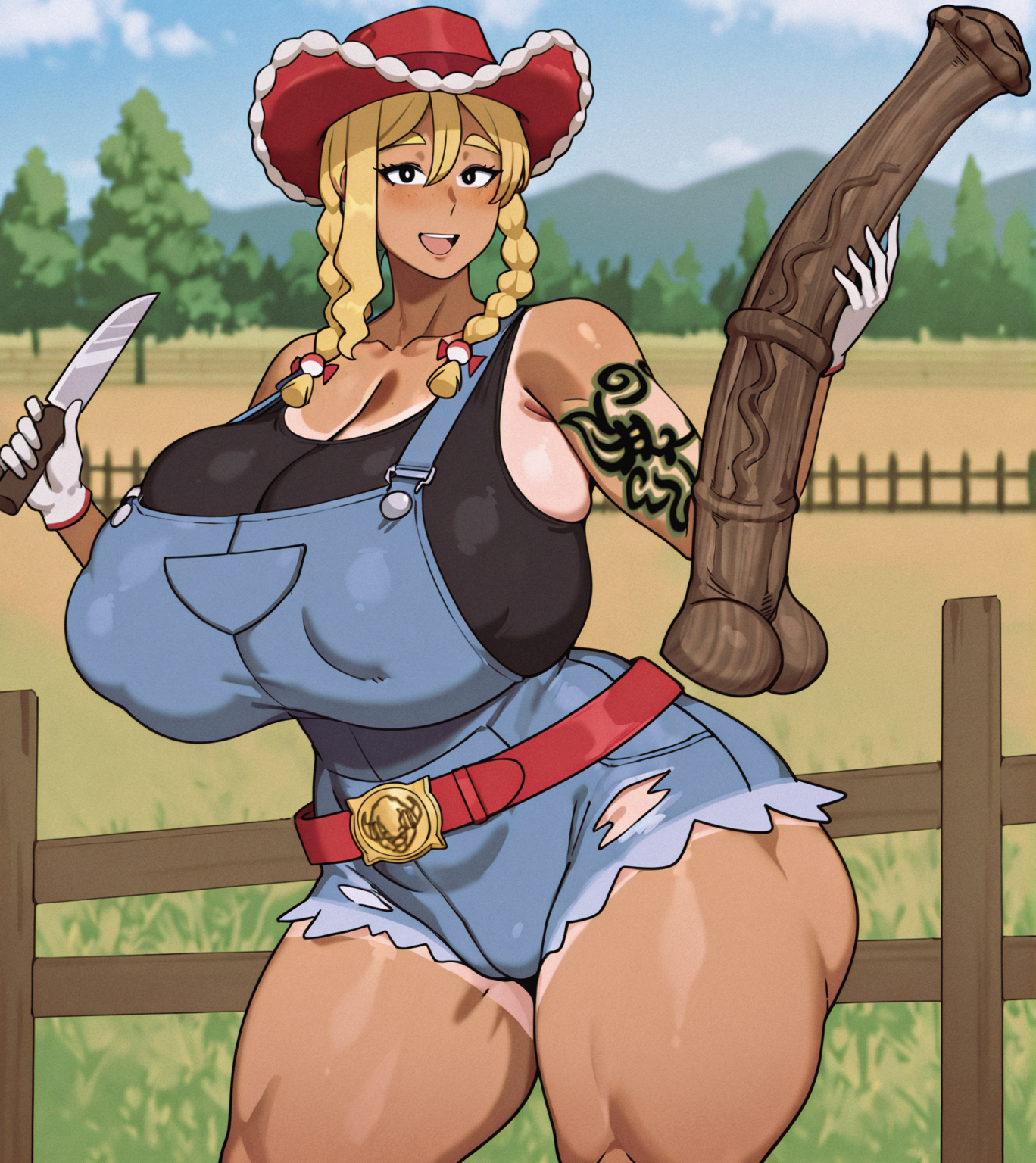 She is not actually threatening you with a knife, the piece of art she is whittling is just a bit on the risque side... https://files.catbox.moe/vwfdld.png