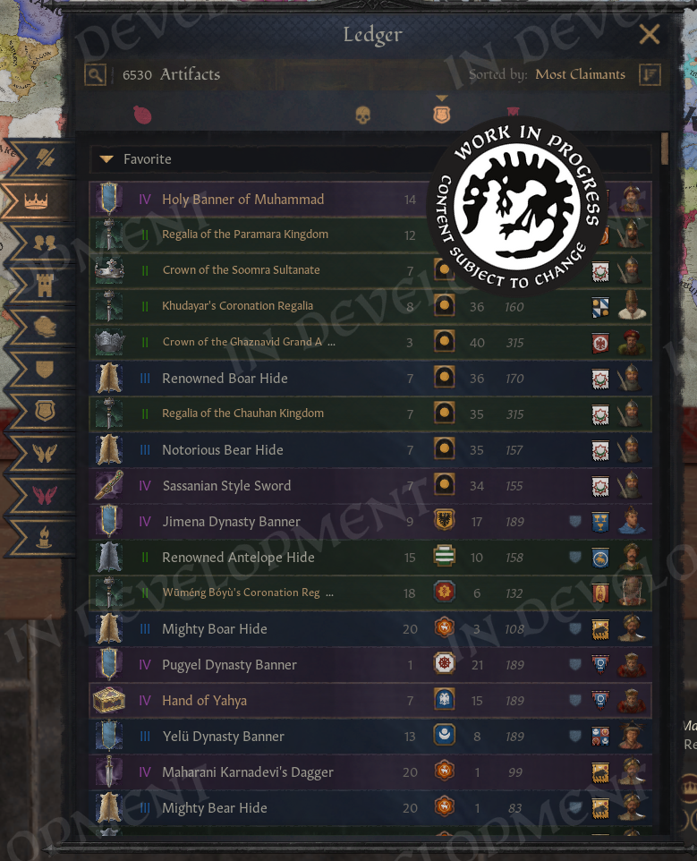 >Artifacts, Characters, Ongoing Wars, Houses, etc