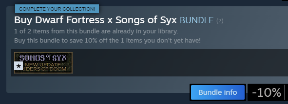 Maybe buy SoS since it never goes on sale and then buy dorf whenever it does?