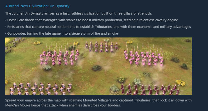 >Game is supposed to be Medieval themed but also has units and Civs from the Renaissance Period using gunpowder.