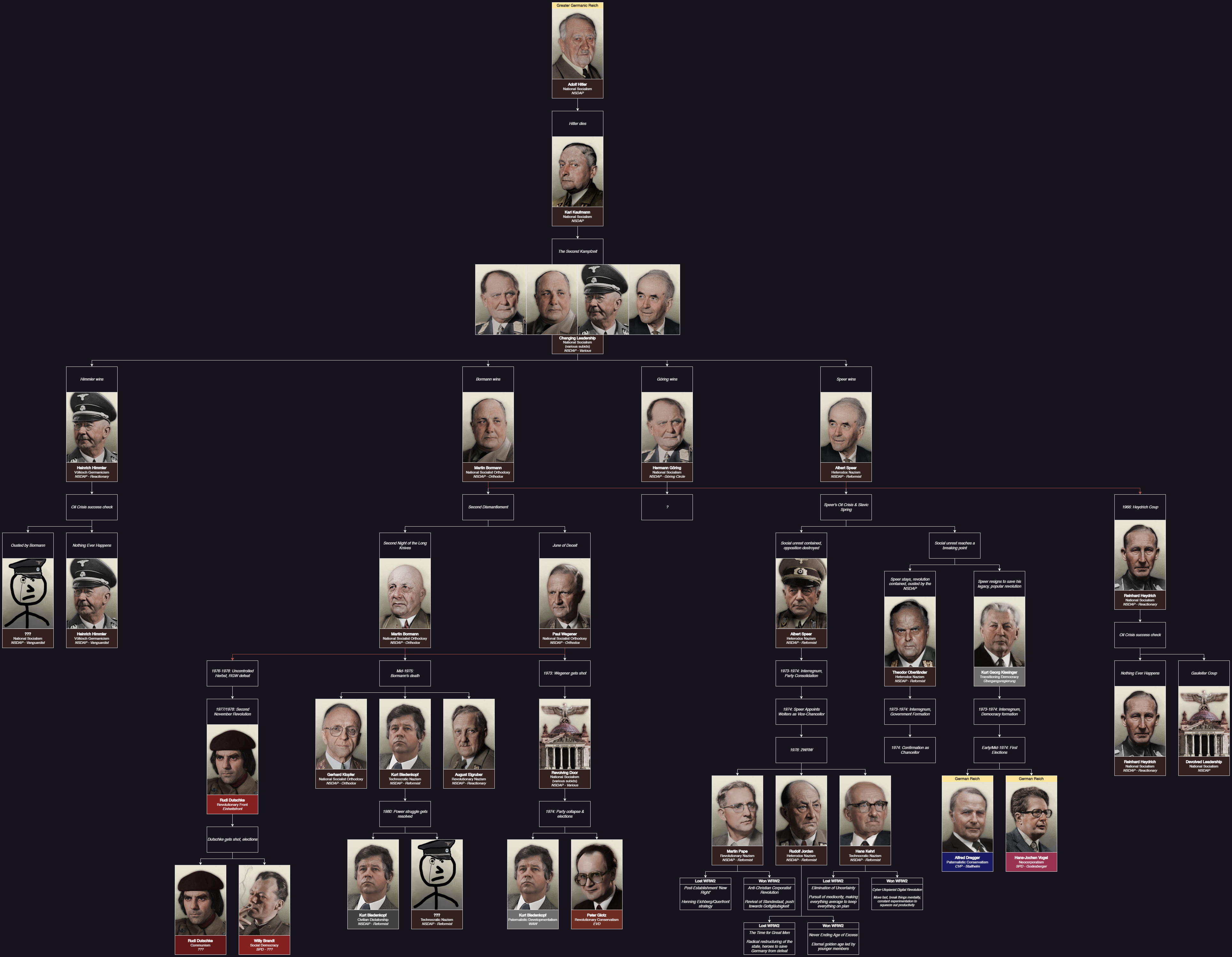 0 progress, there's a new Germany rework sheet here >>2379939 but it just lists his route as a question mark. Bormann has been "nearly done" for years and Speer is in dev hell so don't count on this to drop in your lifetime. A while back someone leaked their plans for a Schoerner route which was basically just going to be Goering but lamer/delayed. This is, of course, completely dead. Picrel is the bleak as fuck "teaser" he dropped while saying that the full thing was too shitty to share. He posted several full pages so it is real, sorry to say.
