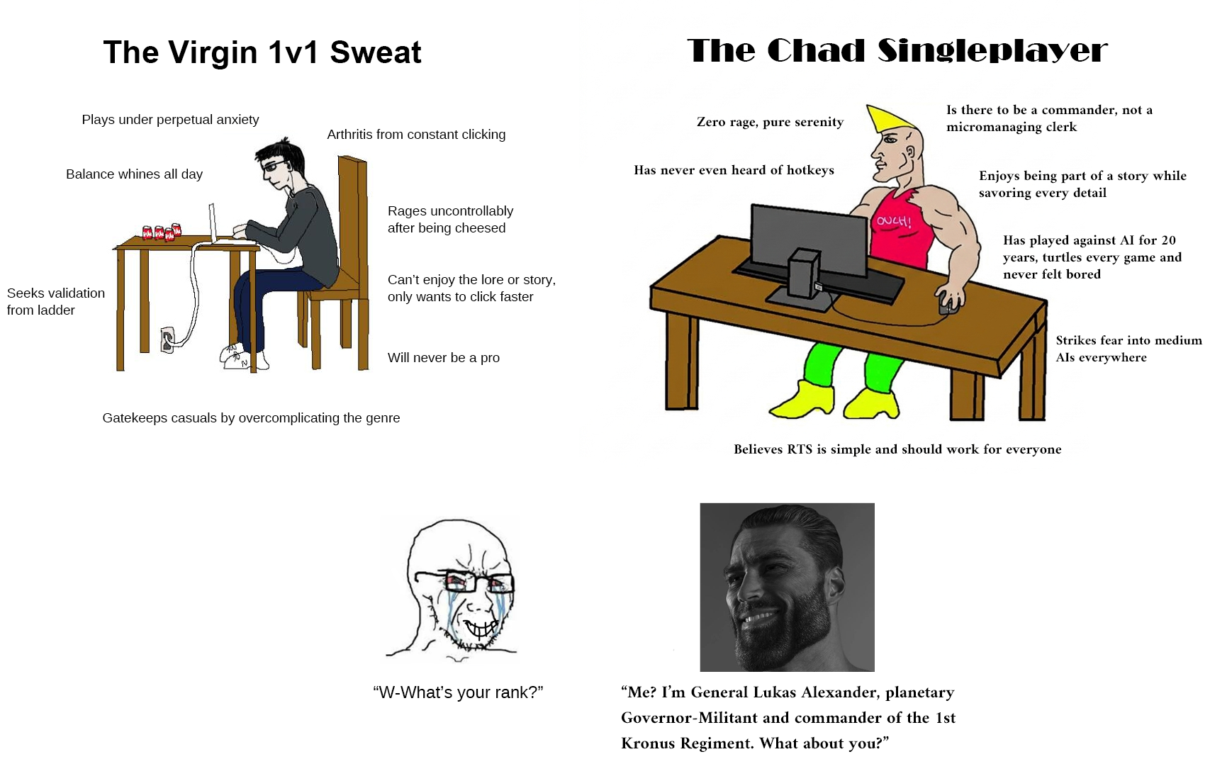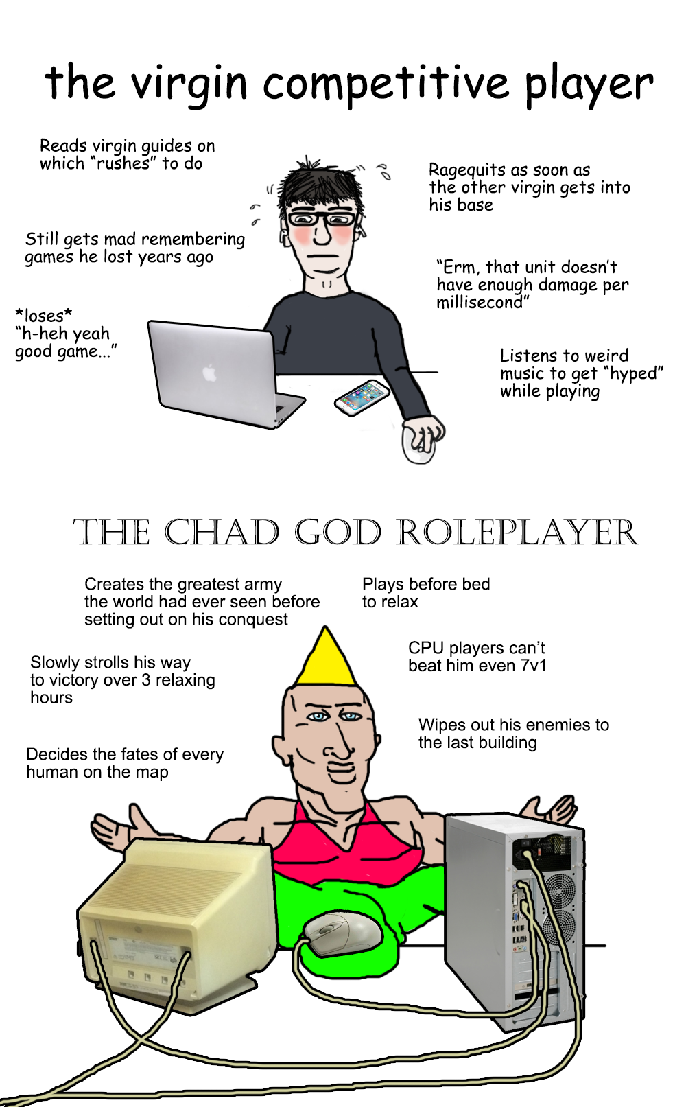 I particularly like how chad doesn't actually have a PC just a keyboard screen and a mouse that's somehow connected to the screen